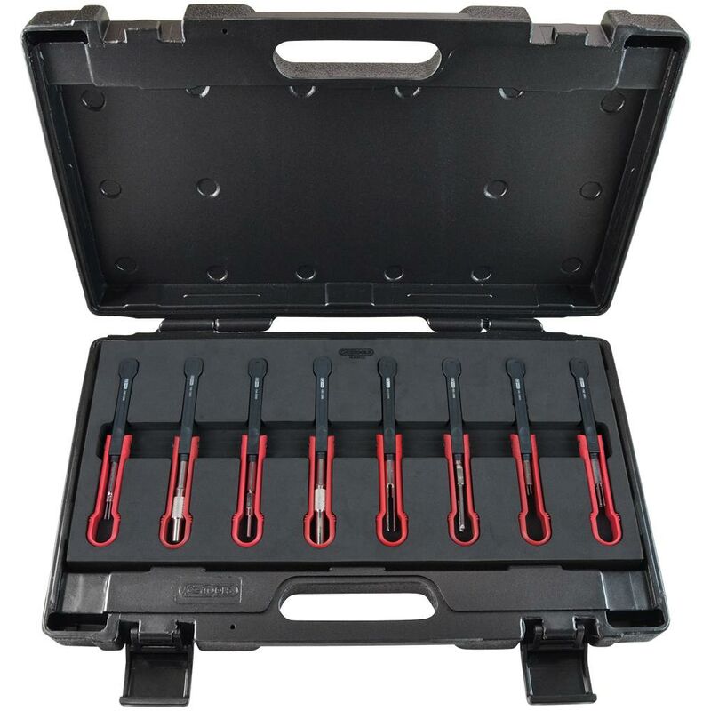 Concepite in modo speciale per contatti a innesto per veicoli commerciali Per lo sblocco di contatti a regola d'arte e senza danni per produttore AMP Tyco (1,5, MPT), GHW (Maxi-DFK, MKS, MKR, VKR Plus), ABS Include tutti gli utensili più comuni per la nuova generazione di veicoli Pezzi in set 8 Area di applicazione LKW Campo di applicazione generale Entriegeln von Kontakten Peso del tessuto 1000 Imballaggio Kunststoffkoffer, extra robust Dimensioni dell'imballaggio 1