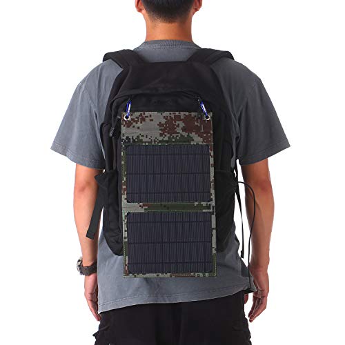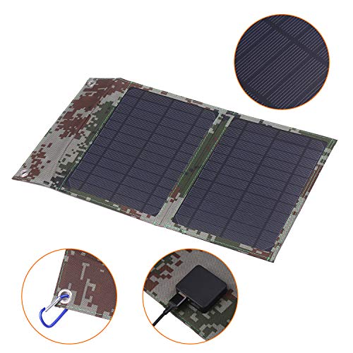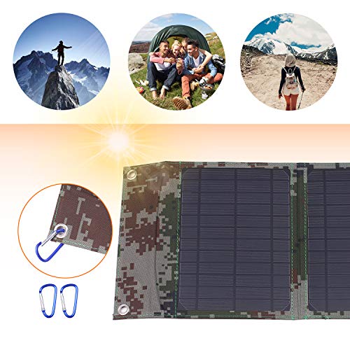 Design pieghevole leggero e compatto - Per il monving ultra elastico, copertura mimetica con fori preforati con 2 ganci per appendere, pannello solare sospeso sulla borsa o auto, design pieghevole più facile da trasportare, appendere e rimuovere.