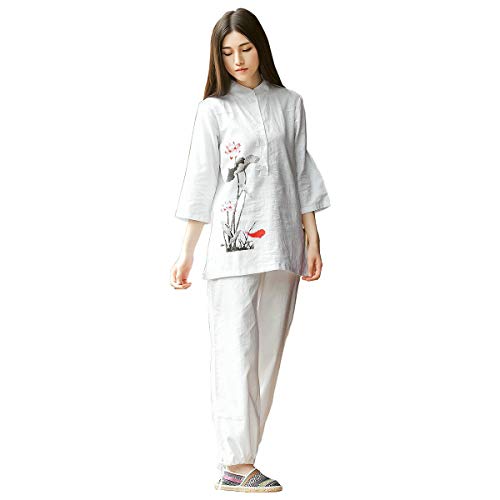 KSUA Vestito da Meditazione Zen da Donna Completo da Tai Chi Abbigliamento Kung Fu Cinese Completo da Yoga in Cotone e Lino, Loto EU S/Etichetta M