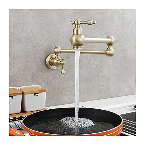 Ksunun Rubinetto da Cucina Acqua Fredda Rubinetto di Riempimento Pentole Ottone Miscelatore per Lavello da Cucina Pieghevole con Braccio Oscillante a Doppio Snodo Foro Singolo retrò,Brushed Gold