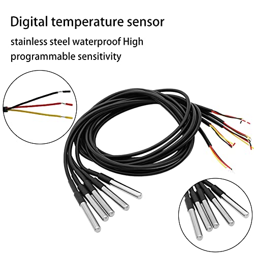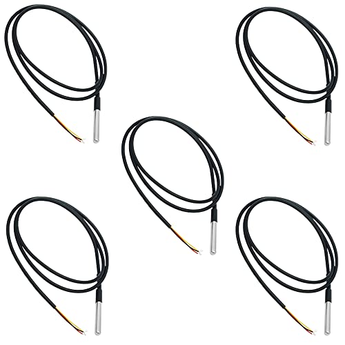 KtbeYTi 5 Pezzi Sensore di Temperatura DS18B20, Sonda di Temperatura Impermeabile con 1m Cavo, Temperatura di Misura da -55 ° C a + 125 ° C per Arduino
