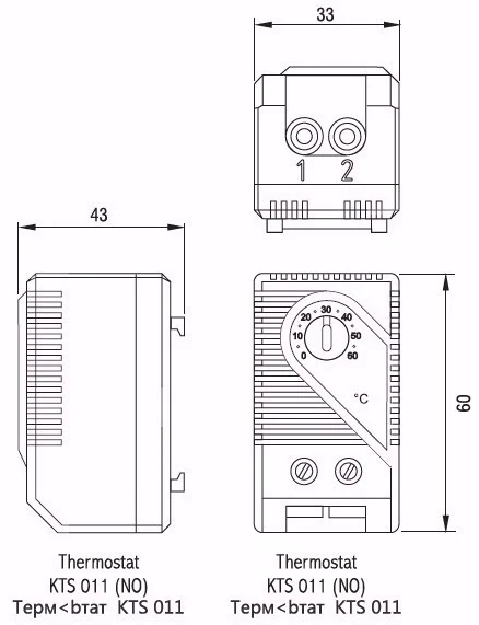 KTS011 0-60 Compact Mechanical Thermostat Sensor Temperature Controller NEW