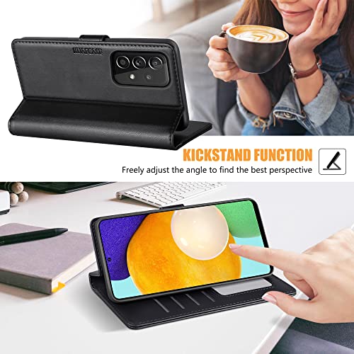 Kuafcase Cover Samsung Galaxy A52s 5G Flip Custodia in Pelle Case Portafoglio [con pellicola protettiva A52s] [Carta Fessura] [Supporto] Magnetica Cover a Libro per Samsung A52s/A52 5G, Nero