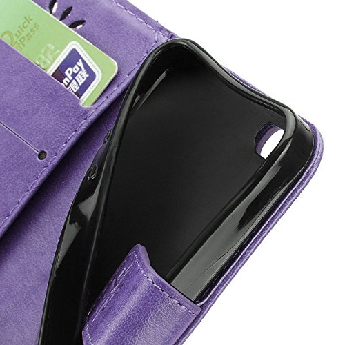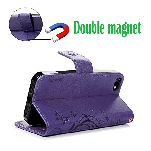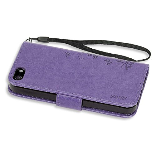 KUAWEI Cover per iPhone SE 2016/5/5S in pelle per iPhone 5 SE 5S Flip Cover Wallet Protective Cover con funzione stand e slot per carte di credito flessibile in TPU (viola)