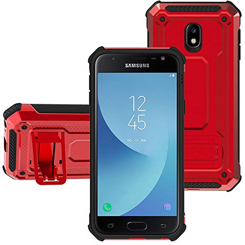 KUAWEI Custodia per Samsung Galaxy J3 2017 Armatura Rugged Heavy Duty Cover Doppio Strato TPU + PC Antiurto Protettiva Case per Galaxy J3 2017 J3 PRO J330 5" (Rosso)