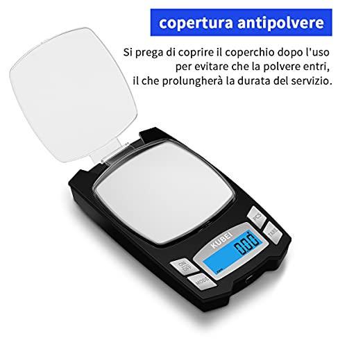 KUBEI USB Ricaricabile 500g/0.01g Mini Portatile Bilancia, Bilancia digitale di precisione Bilancia tascabile digitale mini Funzione Tara per gioielli da cucina, droghe, tè, lievito, caffè