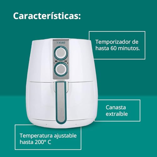 Kubo Friggitrice senza olio da 2,5 litri, friggitrice ad aria, 1500 W, temperatura regolabile, timer, bianca, 17,8 x 23,4 x 24,8 cm