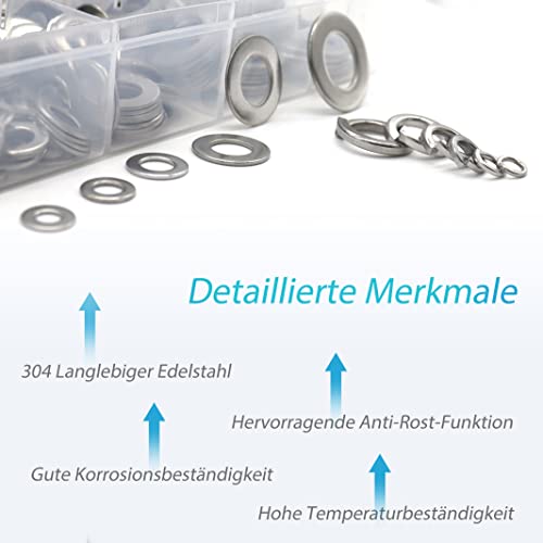 【Materiale di Alta Qualità】Le nostre rondelle sono realizzate in acciaio inossidabile 304 di alta qualità, che ha una buona resistenza alle alte temperature, resistenza alla corrosione, elevata tenacità e resistenza all'usura.