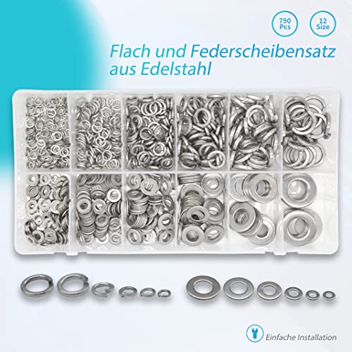 KUBOWAI Set di Rondelle Elastiche in Acciaio Inossidabile da 790 Pezzi, set di Distanziali per Rondelle Elastiche Piatte con Scatola di Immagazzinaggio (12 Misure)