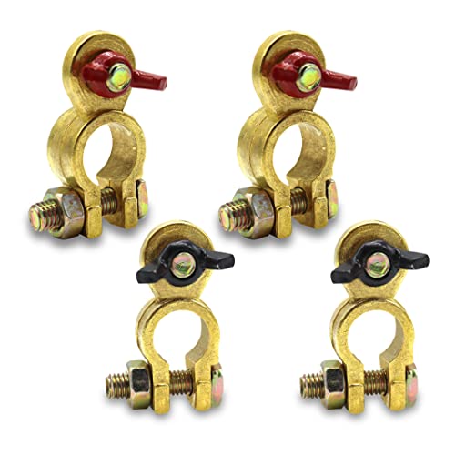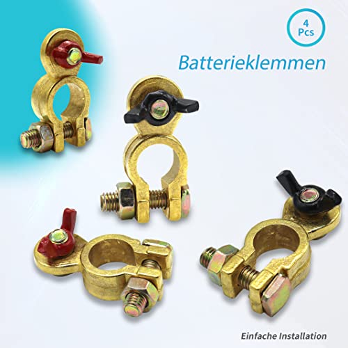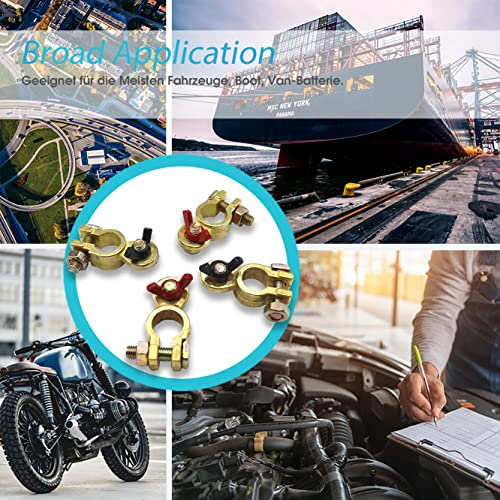 KUBOWAI Terminali Morsetto Batteria, Connettori Batteria M8 Ottone 12V/24V, con Dado ad Ala, per Auto Moto Barche (2 Paio)