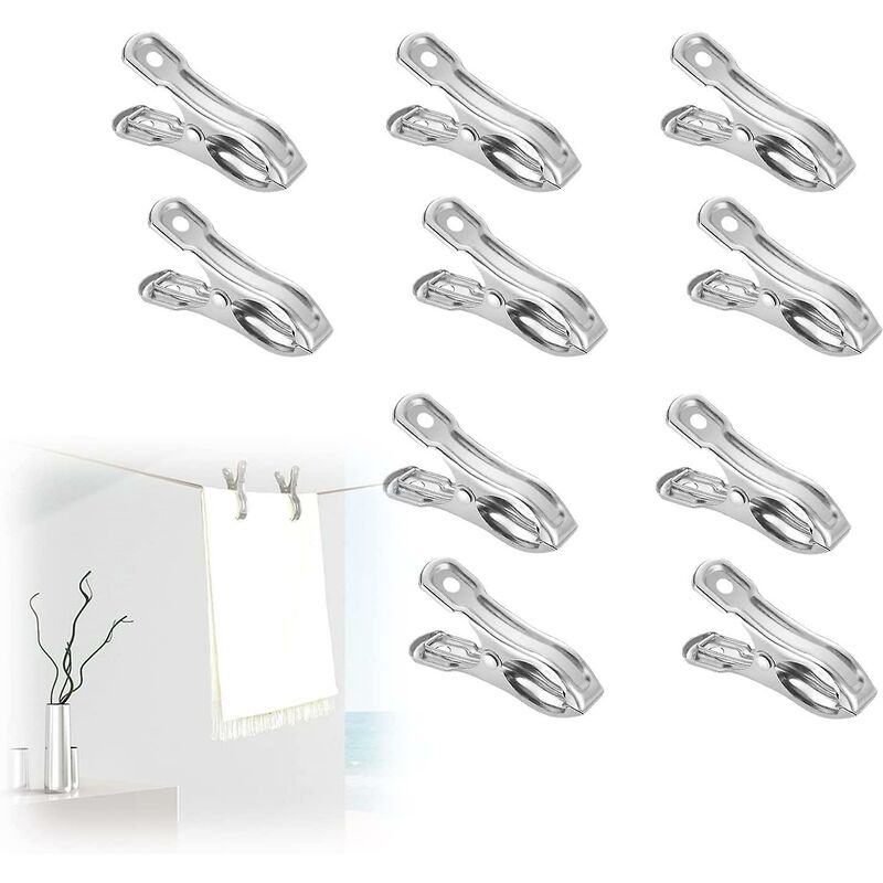 puoi usare le clip per tenere i pantaloni, i leggings, la gonna, la giacca al vento forte. Queste clip sono perfette per appendere oggetti da asciugare ovunque, lavanderia, giardino, bagno, cucina e ufficio, ecc. La dimensione delle mollette multifunzionali è 5,5 cm * 3 cm * 1 cm, aspetto liscio, previene le mani e vestiti da graffi, adatti per uso interno o esterno. Resistente Abbastanza forte e ha una buona resistenza alla corrosione, può essere utilizzato su qualsiasi sporco o estremamente bagnato, sono anche più durevoli delle clip di legno o plastica in quanto non sono suscettibili alla luce solare o allo sbiadimento, possono bloccare la tela in una cornice, tenendo una tovaglia su un tavolo all'esterno. Tieni il telo mare sul lettino per proteggerlo dalla brezza marina. Il pacchetto include: 10 * Fermaglio antivento