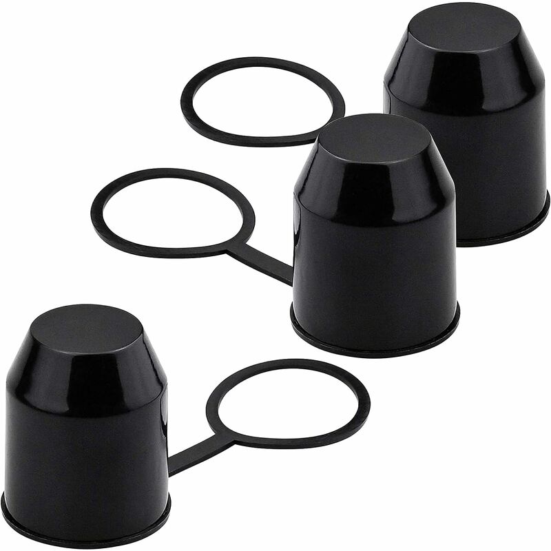Ampio utilizzo: adatto a tutti i comuni ganci di rimorchio per auto, come auto, camion, trajor, rimorchi. Contenuto: 3 cappucci protettivi con fibbia nera. MATERIALI DI ALTA QUALITÀ: La copertura del gancio di traino in plastica rigida ABS di alta qualità non si strappa facilmente anche sotto carichi pesanti. Adatto anche come piccolo ammortizzatore durante il parcheggio. Copertura del gancio di traino con anello di bloccaggio: il cappuccio di protezione del gancio di traino ha un anello di bloccaggio, per le sfere del gancio di traino, un diametro massimo di 50 mm. Così non perderai mai la copertura rotonda da rimontare in futuro. Basta collegarla, fissarla perfettamente: si adatta perfettamente alla forma del tuo gancio di traino e non ha praticamente alcun margine di manovra. Il nostro cappuccio sferico si adatta saldamente al giunto sferico del rimorchio e non oscilla. RESISTENZA ALLE INTEMPERIE: Proteggi il gancio di traino della tua auto da corrosione, danni, umidità, sporco
