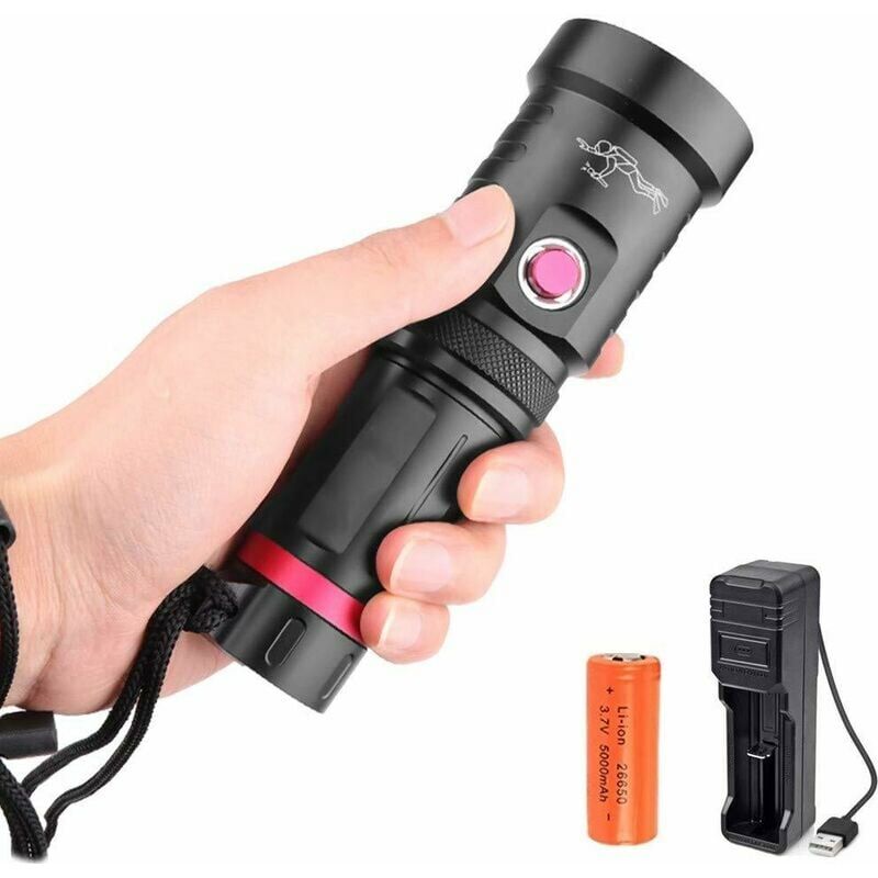 AFFIDABILE E PRATICORealizzato in lega di alluminio di alta qualità, ossidazione di grado militare e trattamento antiusura, il substrato in rame termoelettrico isolato conduce rapidamente il calore generato dal LED. 3 modalità di illuminazione soddisfano le tue diverse esigenze: Alta>Media>Bassa. BATTERIA A LUNGA DURATA Alimentata dalla nostra batteria ricaricabile da 5000 mAh 3,7 V 26650, questa torcia subacquea dura 2 volte più a lungo delle luci subacquee. tasca con 18650 batterie. Non avrai paura di rimanere senza energia con la torcia quando ti immergi. 100 M SUBACQUEO IMPERMEABILE Speciale design di tenuta, grado di impermeabilità IPX8, questa luce da immersione professionale sopravvive a 100 metri di profondità. La distanza di illuminazione subacquea può arrivare fino a 250 metri. Fatti notare dai compagni di immersione tutto il tempo. TORCIA SUBACQUEA SUPER LUMINOSA Una torcia subacquea affidabile è un compagno essenziale per i subacquei. Dotato di una lampadina LED XHP70.2