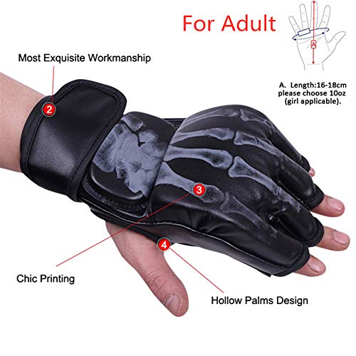 KUENG Corticale Guanti Boxe Fingerless Guanti per Adulti Guanti Muay Thai Regolabile Guanti per Bambini for Kickboxing Sparring Junior Red,Freesize