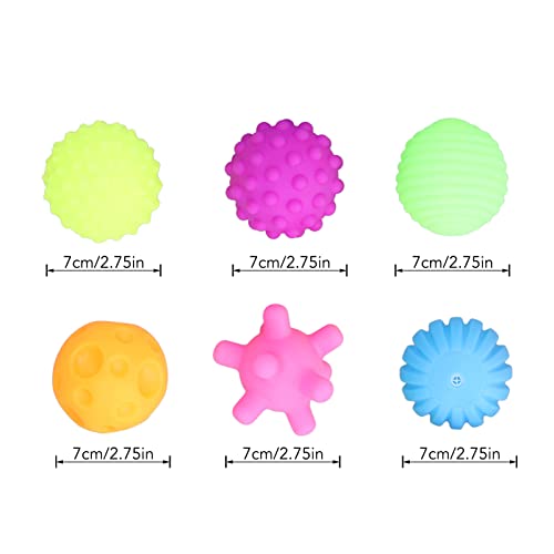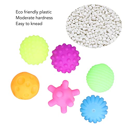 Allenamento della presa: 6 pezzi di palla testurizzata, con diverse dimensioni e forme, aiutano a esercitare l'abilità di presa della mano del bambino. Luminosità e saturazione del colore moderate per sviluppare la discriminazione visiva del colore.