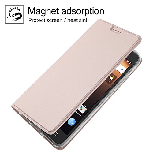 KuGi Alcatel One Touch A3 XL Cover Slim Flip Cover Custodia per Alcatel One Touch A3 XL Smartphone (Flip Series - Oro Rosa)