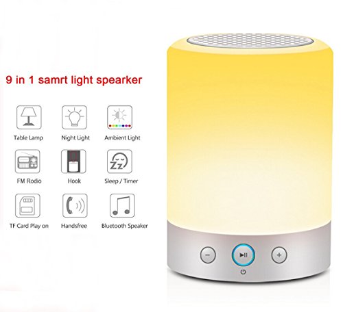Altoparlante multifunzionale di Bluetooth e la lampada a LED. Ottenere questa lampada a LED, potrebbe essere non più necessario il qualsiasi altro diffusore, l'atmosfera touch-Operated lampada prende illuminazione a LED al livello successivo con un lightshow vivace e coinvolgente. Accendi un nuovo mondo luminoso in stile sensazionale