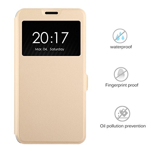 KuGi Ulefone Power 2 Cover Slim Flip Cover Custodia per Ulefone Power 2 Smartphone (Flip Series - Oro)