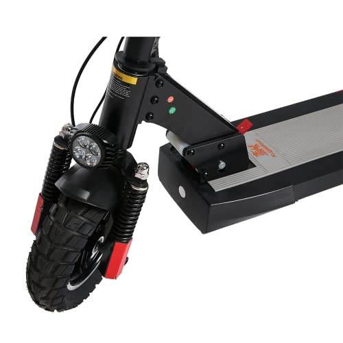 【SICUREZZA - FRENANTE DOPPIE E FARI A LED】 Nostro M4 PRO è dotato il sistema di freno doppio, puoi rapidamente e facilmente fermarsi quando vuoi. Inoltre ha un faro anteriore a LED ultraluminoso e il fanale posteriore con luce rossa per far ricordare ai pedoni e altri veicoli di notte. Il desgin di 10 pollici pnumatici gonfiabili fuoristrada antiscivolo e resisitente aumenta il livello di sicurezza per protegere i clienti