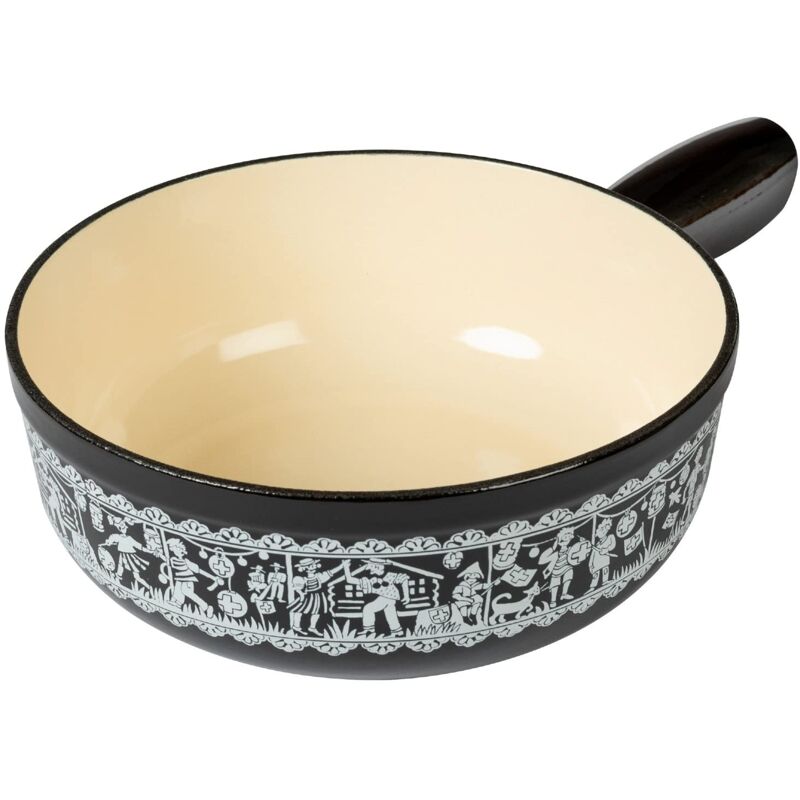 Descrizione Due grandi tradizioni svizzere si fondono con il Caquelon. Contrariamente alla lunga tradizione della festa nazionale, la fonduta ha guadagnato popolarità e notorietà solo negli anni '50. Oggi, entrambe le cose sono inimmaginabili dalla storia culturale svizzera, e la nuova celebrazione federale Caquelon celebra questo legame in modo solenne. La robusta ghisa garantisce una conduzione uniforme del calore e trattiene il calore in modo ideale, per un piacere ancora più lungo del formaggio. Naturalmente utilizzabile per tutti i piani cottura, anche quelli a induzione.