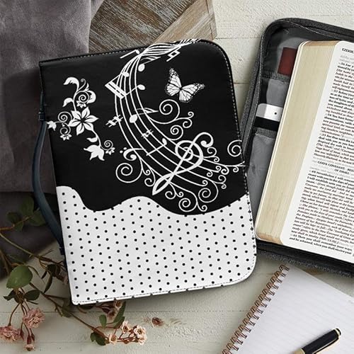 Kuiaobaty Custodia per borsa della Bibbia con manico a pois e cerniera per staff musicale copertine per libri in brossura custodia protettiva per donne