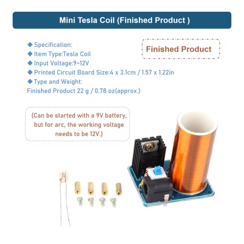 KUIDAMOS Kit modulo Scintilla LED remoto Mini Bobina di Tesla Kit di Trasmissione Tesla Bobina Elettronica di Tesla per Trasmissione Wireless di elettricità, per(Finished Product)