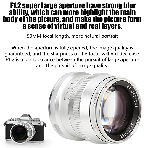 Grande apertura F1.2: l'apertura super grande F1.2 ha una forte capacità di sfocatura, che può evidenziare maggiormente il corpo principale dell'immagine e rendere l'immagine un senso di strati virtuali e reali. Bellissimo bokeh fa foto piene di poesia e valorizza il fascino artistico.