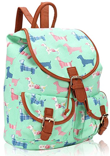 Kukubird Borsa a tracolla cane bassotto Zaino Canvas Zaino Scuola borsa Università - (doppia tasca) GREEN