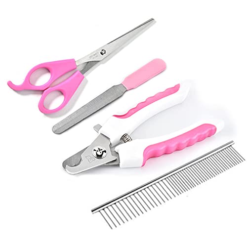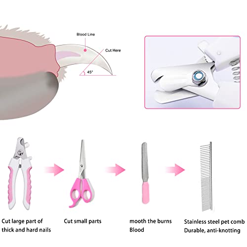 KUMAYES Set Tagliaunghie Cane con Gatto Professionali Lima Unghie Cani Forbici Acciaio Inossidabile Toelettatura Cesoie Artiglio Pinza Professionale per Zampe di Animali Domestici (F, Rosa)