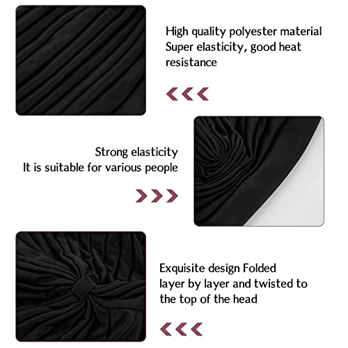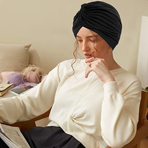 KUMAYES Turbanti per Donna, Cappello Turbante Pieghe, Foulard per Capelli, Fascia Bandana Cappellini, Morbido Cappello Elastico Berretto Pre Annodato Da Estive (F, Nero)