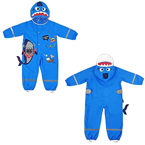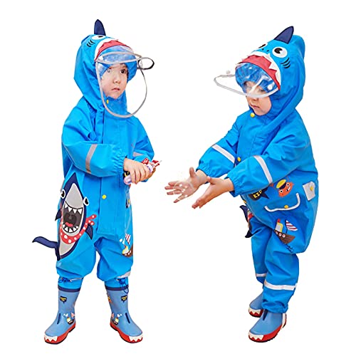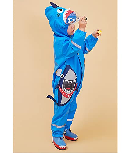 Kumkey Impermeabile Bambini Giacche da Pioggia con Cappuccio Ragazze Ragazzi Poncho Pioggia 3D Animale Tuta Mantella Antipioggia Leggero Cappotto di Pioggia per 1-8 Anni (Squalo Blu,M)