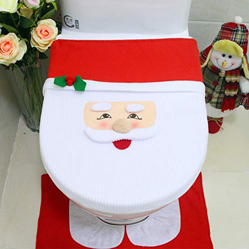 Kungfu Mall - Set di 3 copriwater natalizio per decorare il bagno (Babbo Natale)