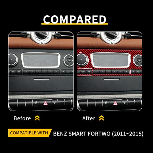 KUNGKIC Fibra di carbonio per auto pannello di controllo centrale adesivo decorativo compatibile con Mercedes Benz Smart 451 Fortwo 2011-2015 accessorio per il tastierino del volume (nero rosso)