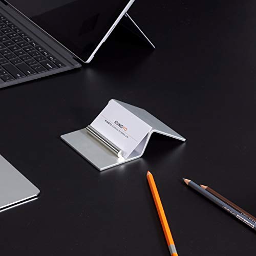 KUNGYO Porta Biglietti da Visita da Tavolo - Metallo Porta-Carte di Nome con Tappetino Antiscivolo per Ufficio Donna Uomo, Alluminio (Argento)