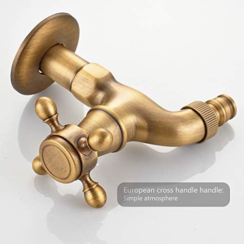 KUNGYO Vintage Rubinetto della Lavatrice con Croce Singola Maniglia Interfaccia G1/2 - Rubinetto de Ottone Montato a Parete per Giardino Bagno(Bronze)