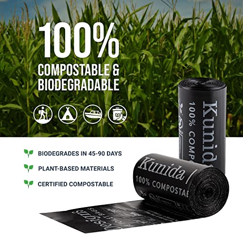 Kunida Designs Borsa igienica Portatile biodegradabile - 30 Fodere per comode da Campeggio compostabili - 8 galloni 23x26 Pollici - 1,18 Mil - ASTM D6400 e Ok Compost Certified