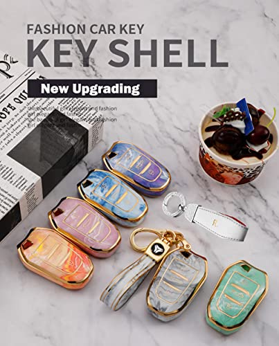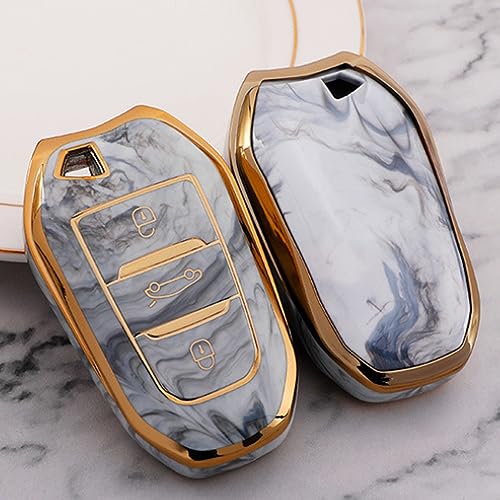 Materiale: la custodia per chiave è realizzata in TPU morbido di alta qualità, che è molto durevole, resistente all'usura, a prova di caduta, non si deforma e non sbiadisce facilmente. Design in marmorizzazione, unico ed elegante. Con design alla moda con bordo dorato, elegante e bello!