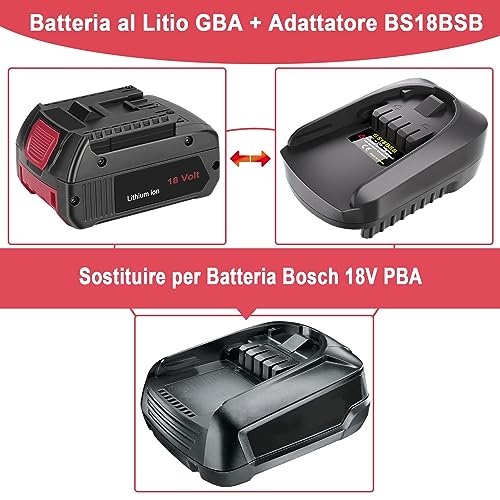 KUNLUN 18V Batteria Adattatore Convertitore per Bosch PBA 18V Cordless Utensili Sistema compatibile con BAT609 BAT618 BAT619 BAT622 Bosch GBA 18V Batteria Sostituzione per Bosch PBA 18V Batteria