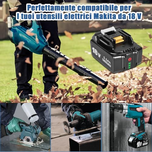 【AMPIA COMPATIBILITÀ】 Sostituzione batteria compatibile per Makita 18v utensili elettrici senza fili, perfettamente compatibile con Makita 18V batteria BL1850B BL1850 BL1860B BL1860 BL1840B BL1840 BL1830B BL1830 BL1835B BL1835 BL1845B BL1845 BL1820B BL1820 BL1815B BL1815 194204-5 194205-3 194309-1 196399-0 196673-6 LXT-400 ecc.