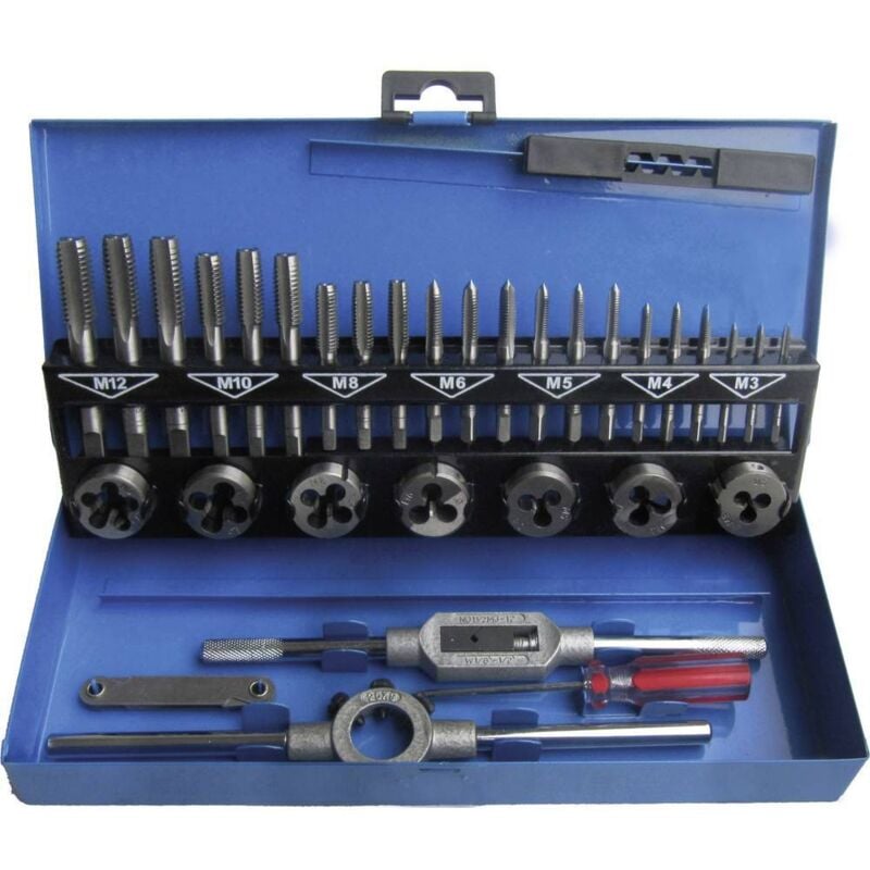 Dettagli tecnici Dimensione del prodotto, lunghezza 26.5 mm Peso 1.409 kg Tipo prodotto KIT maschi e filiere Set filettatura metrica interno/esterno 32 pz Set filettatura metrica per filettatura interna ed esterna. Per la riparazione e per neufertigung con dimensioni metriche di grandezza: M3 - M4 - M5 - M6 - M8 - M10 - M12 Testo tradotto automaticamente. Punti di forza e dettagli In scatola in acciaio Incluso nella consegna A seconda dimensione filettatura 3 Punta filettatura interna (usura) 3 pz. A seconda dimensione filettatura 1 Aussengewindeschneidkluppe Impugnatura per punte da trapano con filettatura interna Impugnatura per Aussengewindeschneidkluppe Calibro per filettatura Cacciavite Requisiti di sistema null