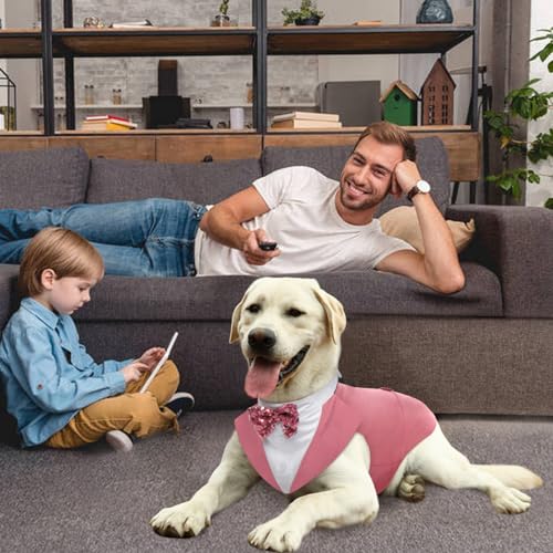 Kuoser Set di smoking per cani e bandana, smoking per cani, abito da festa di nozze, camicia con papillon da matrimonio formale per cani di taglia grande e media Golden Retriever Samo Bulldogs