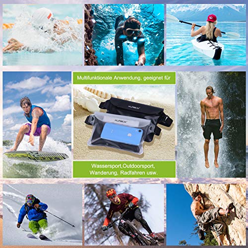 【Certificato Impermeabile al 100%】Questo pochette impermeabile ha tre cerniere sigillate e velcor sulla parte superiore, Certificato di Laboratorio IPX8 fino a 10 metri sott'acqua per un'ora, mantiene il cellulare e gli oggetti di valore al sicuro e all'asciutto, adatto a molti attività acquatiche come spiaggia Nuoto, canottaggio, surf, e normali escursioni, come al mare e in bicicletta, ecc.