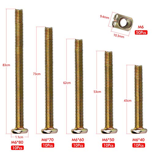 ★ Materiale di alta qualità - 5 misure, 40/50/60/70/80 mm (10 pezzi). 50 dadi per viti. Il set di viti è realizzato in acciaio inossidabile, antiruggine, resistente alla corrosione, non si deforma. Durevole, durevole.