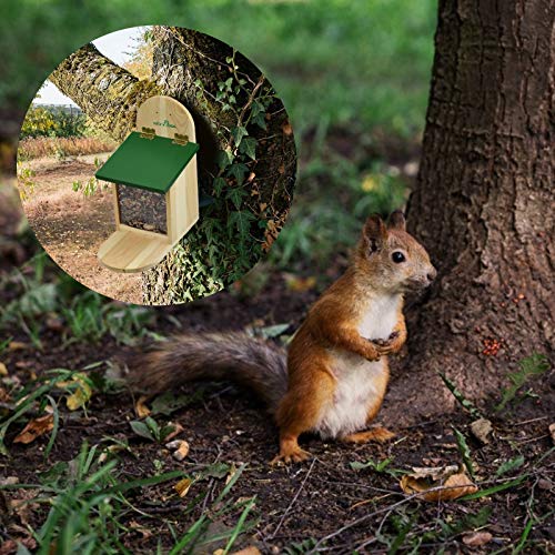 Hanging o in piedi casa scoiattolo è adatto per l'alimentazione di scoiattoli nativi e chip siberiani. Sviluppato e raccomandato da biologi e ambientalisti.
