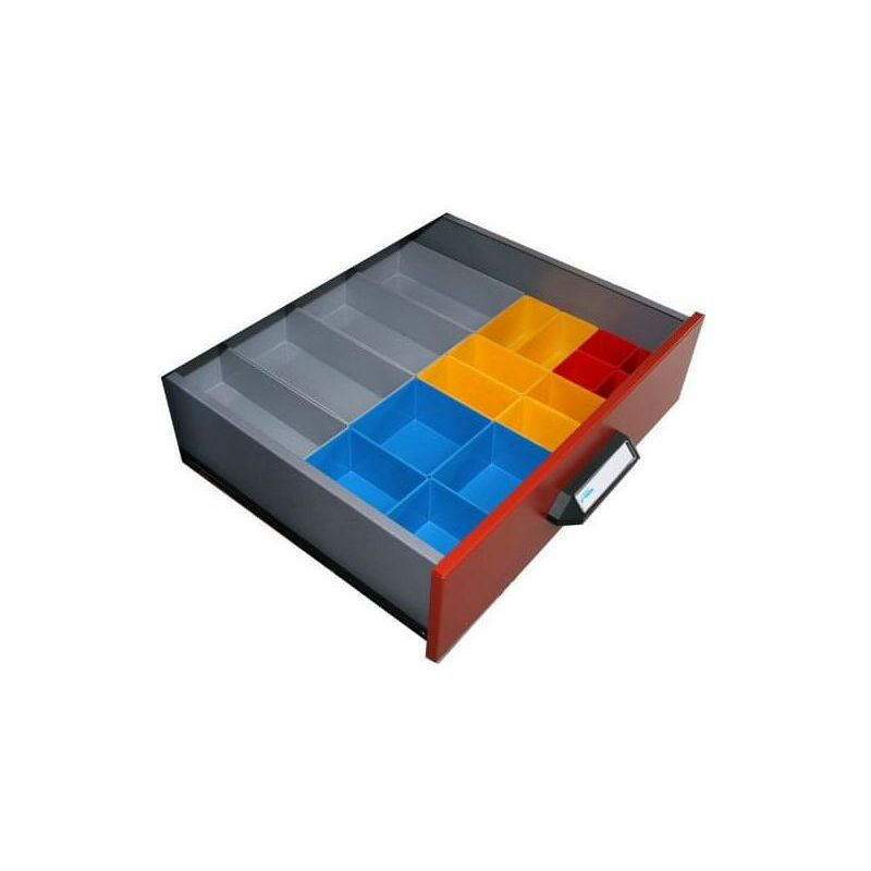 Kupper - Divisore universale per cassetti altezza 12 cm (18 scatole - 4 misure) - 995 Dimensioni: altezza 12 cm dei cassetti Questo divisore è composto da: - 4 scatole rosse di 54 x 54 x 63 mm - 6 scatole gialle di 54 x 108 x 63 mm - 4 scatole blu di 108 x 108 x 63 mm - 4 scatole grigie di 108 x 216 x 63 mm