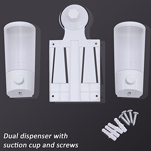 Kurelle Set Dispenser Doppio Sapone Liquido Montato a Parete con Ventosa per Cucina Bagno Doccia Shampo Gel Balsamo Dispenser Supporto Sapone Liquido Manuale