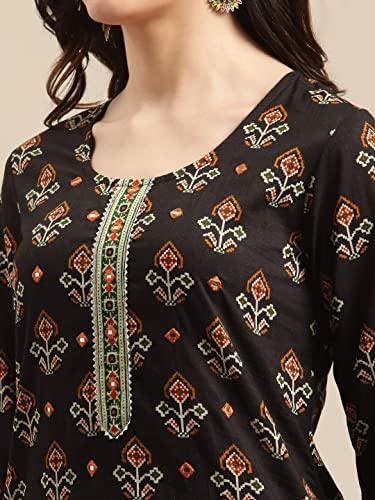 Kurta - Set da donna a tunica indiana, in cotone o rayon kurti con palazzo, Nero e oro., X-Large