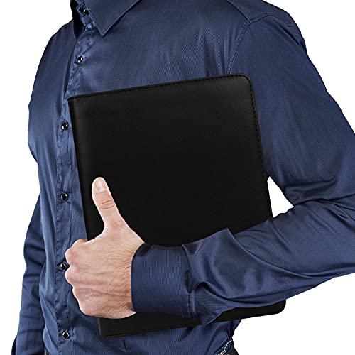 CARTELLA PORTADOCUMENTI PROFESSIONALE: Le nostre eleganti cartelle possono essere utilizzate a scuola o in ufficio. Prendi appunti con il blocco note e usa gli appunti facilmente senza rimuoverli. Rimani organizzato e dai una prima buona impressione durante le interviste. Il design nero, pratico ed elegante, è adatto sia per uomini che per donne e rappresenta un regalo professionale per colleghi di lavoro, clienti a