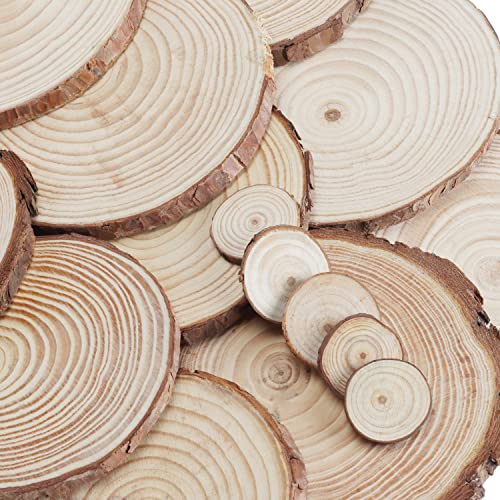 Kurtzy Cerchi Legno Tondo Grezzi (30 Tronchi Legno Decorativi) - Dischi Legno 3-16 cm - Dischi di Legno Grezzo con Corteccia Senza Fori - Fette di Legno Fai da Te per Decorazioni Natalizie e Nuziali