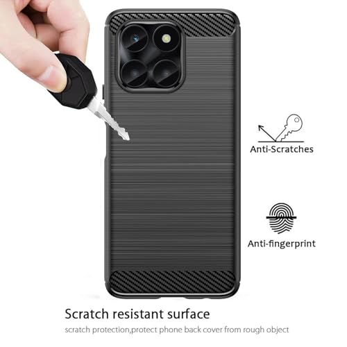KUSINHOKA Cover per Honor X6a, Morbido Silicone [Antiurto] Fibra Carbonio Custodia, Leggero [Anti-Graffio] Bumper Case TPU Protettiva Custodia per Honor X6a, Nero
